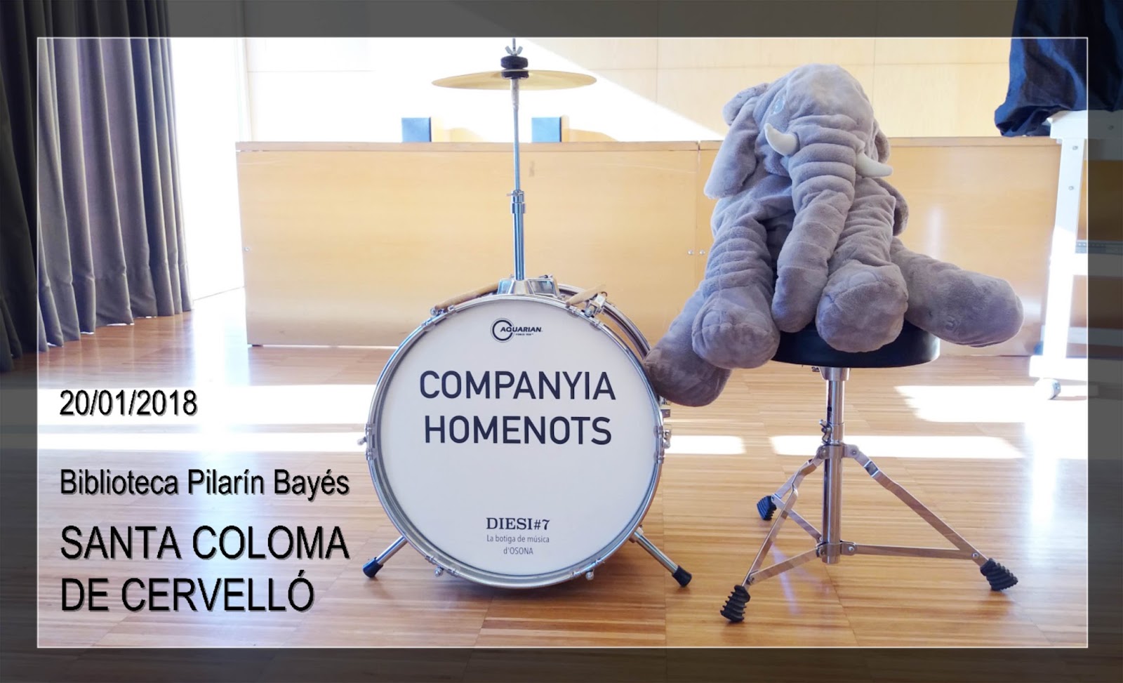 D’entrada vau començar un pèl tímids, no sabíeu ben bé què esperàvem de vosaltres, però quan vàreu adonar-vos de què anava la història la truita es va girar i no ens va faltar ajuda en cap moment. Però no només els més petits, també els pares i mares que vàreu estar especialment atents ajudant-nos en tot el què vam necessitar. Especial menció a la nostra bibliotecària, que va clavar el seu paper, i pel nostre efecte especial vigatà de soca-rel que també ens va ajudar a buscar el tresor. I els nens i les nenes? Mica en mica us vàreu anar engrescant i vam aconseguir explicar un conte on ens vam divertir, on vam patir, on literalment vam passar por i on també vàrem riure, una mica de tot! I sí,no en tingueu cap dubte, ens en vam sortir i gràcies al Daniel vam aconseguir trobar el llibre màgic, visca! Un llibre màgic que vam poder certificar que era el de la de felicitat perquè quan el vam obrir, quines cares d’alegria!! I després sessió de bateria on totes i tots vàreu estar genials, quin nivell!! Per cert, en BUM vol que destaquem una cosa que sempre ens agrada molt: que els pares i mares, enlloc de marxar a mida que els vostres fills i filles van tocant, us quedeu a mirar com els altres nens i nenes també toquen la bateria i els aplaudiu com si fossin els vostres fills i filles. És molt bonic i per això vàreu tenir el vostre premi, sou genials!!